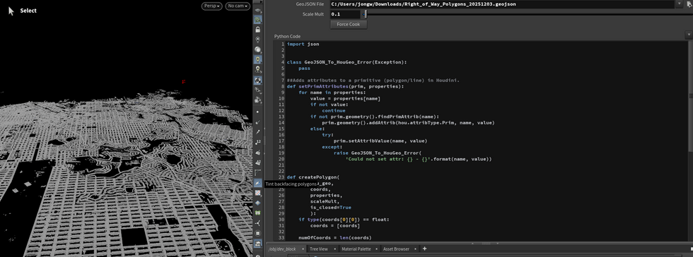 Converts GeoJSON map data into 3D geometry in Houdini
